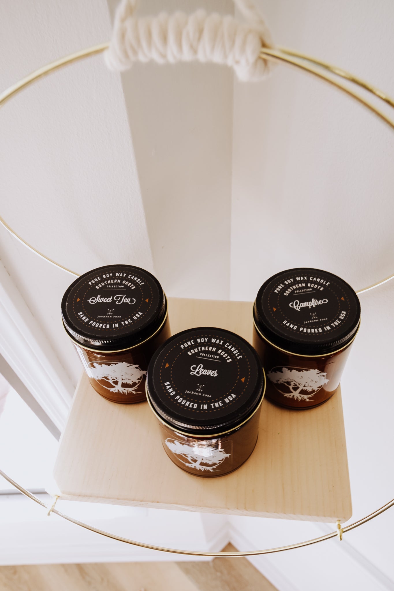 You'll love this stylish (and perfectly portable!) version of our best-selling Southern Roots collection. Hand-poured in beautiful amber jars with a convenient screw-top lid, each candle is 7.5 oz of pure soy scented with our signature safe and natural fragrance blends.